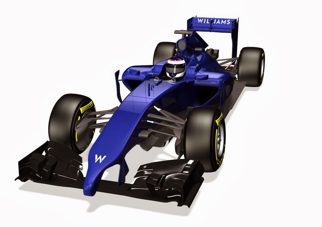 The side view of the car shows us that the team are looking at the possibility of splitting the lower portion of the airflow conditioner. The Sidepod itself is very much like the design seen yesterday from Force India with a decent undercut at the front of the Sidepod (under the inlet) allowing airflow around the lower region and across the floor. Meanwhile a large exit is made at the rear of the Sidepod to allow the waste airflow used by the intercooler/radiators to be dispatched of. As we can see the team has also decided to retain their approach to the the engine cover with a short cover meeting the dimensional regulations with the aid of Shark Fin. The side view also affords us the chance to see that Williams will take the opportunity to integrate the exhaust pipework within a shroud attached to the gearbox/crash structure casing.